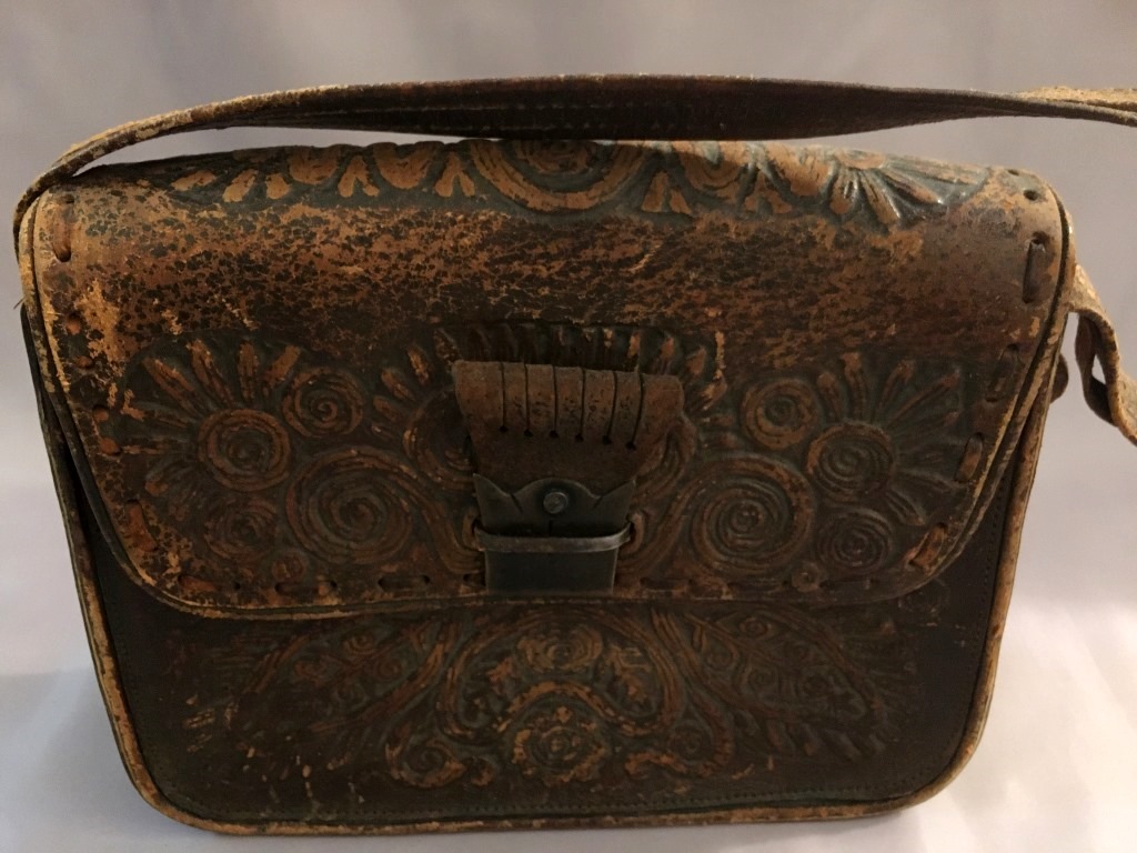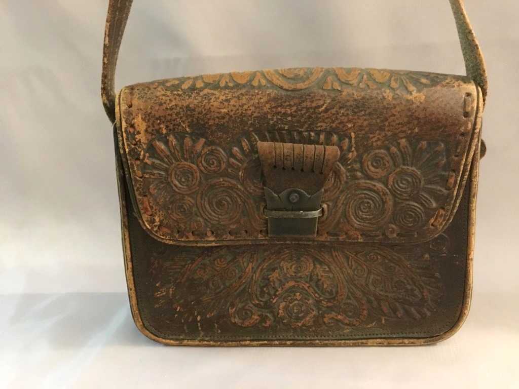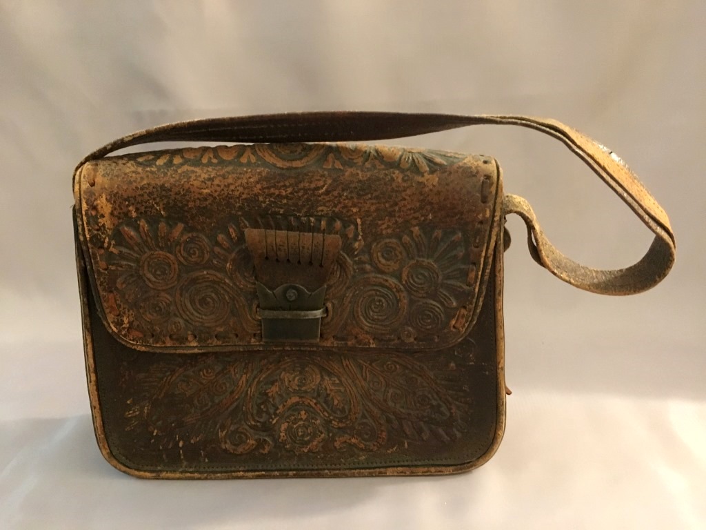 Kabelka z oslí kůže, dobrý stav, D 24x Š 7,5 X V19 cm